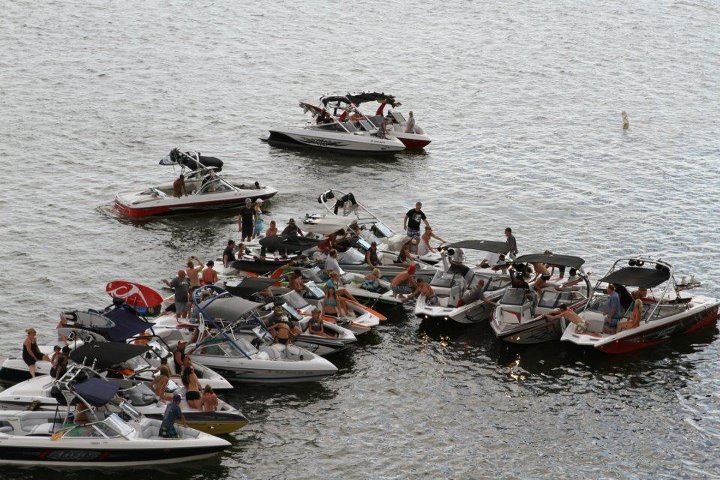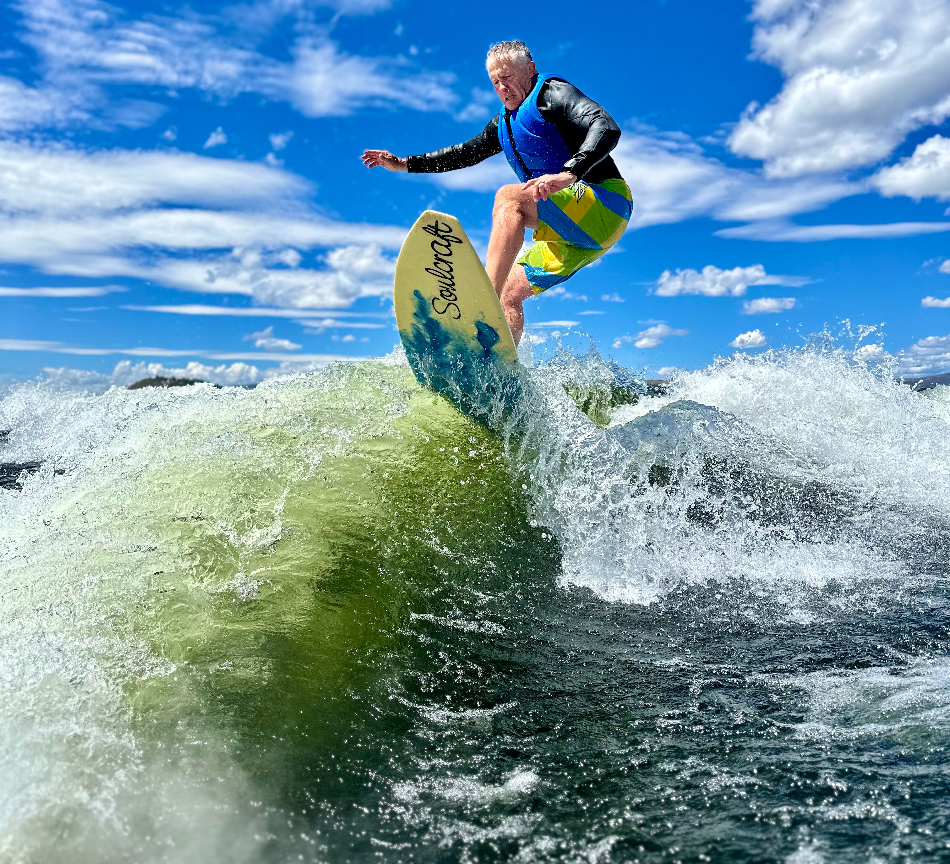 When asked what their typical lake day looks like, Jeff explains that it starts early so Lorri can find glassy water for waterskiing. Then the crew arrives for the surf session. "We usually stay out most of the day, have lunch on the boat, and surf," he says. "Time to enjoy forced relaxation and conversations with family and friends, and showing off surf skills."