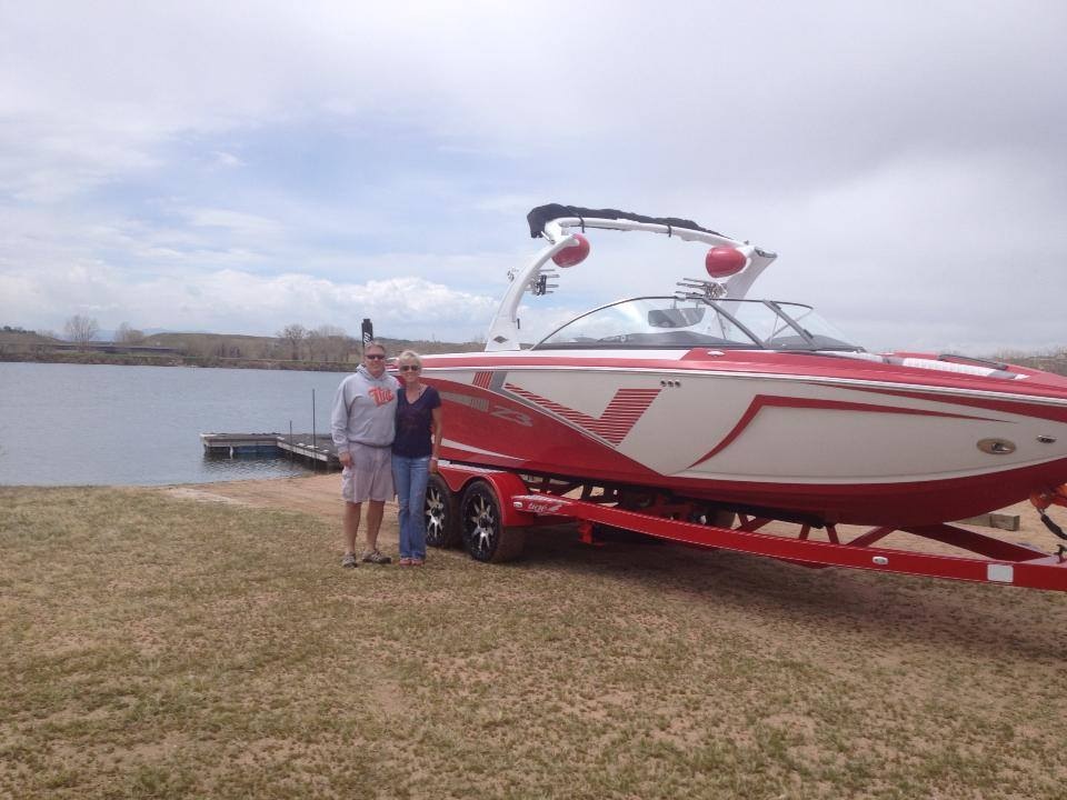 What started as a search for used boats in 2004 led them to Wakeboard & Waterski Specialty (WWS) in Denver, where they met Bill Bistline and discovered Tigé. The Strizichs ended up custom ordering a 22v in red, white, and blue. It was so boldly colored that Bill made Jeff put down a substantial deposit. "He felt like if I didn't buy the boat, he would have a hard time selling it," Jeff laughs. "Everyone loved the colors!"
