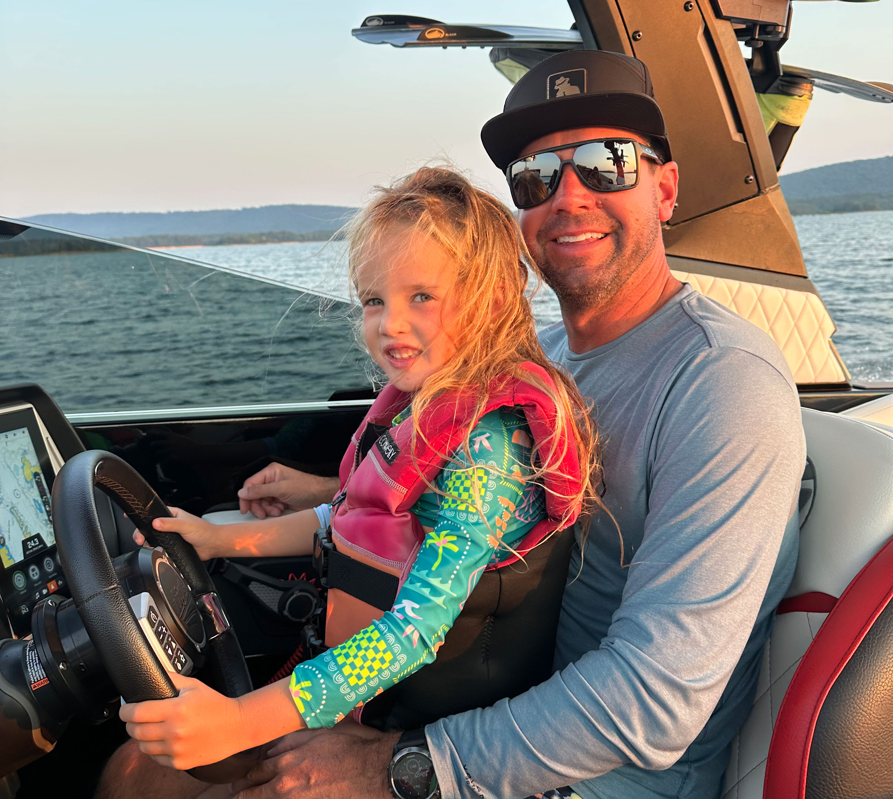 After years of ownership and multiple upgrades, Brandon knows exactly what features matter most for their family's days on the water. "Everything in the helm," he says. "From the low bow rise, to captain's chair, to throttle and GO SURF/Clear interface. Makes the long days on the water possible."