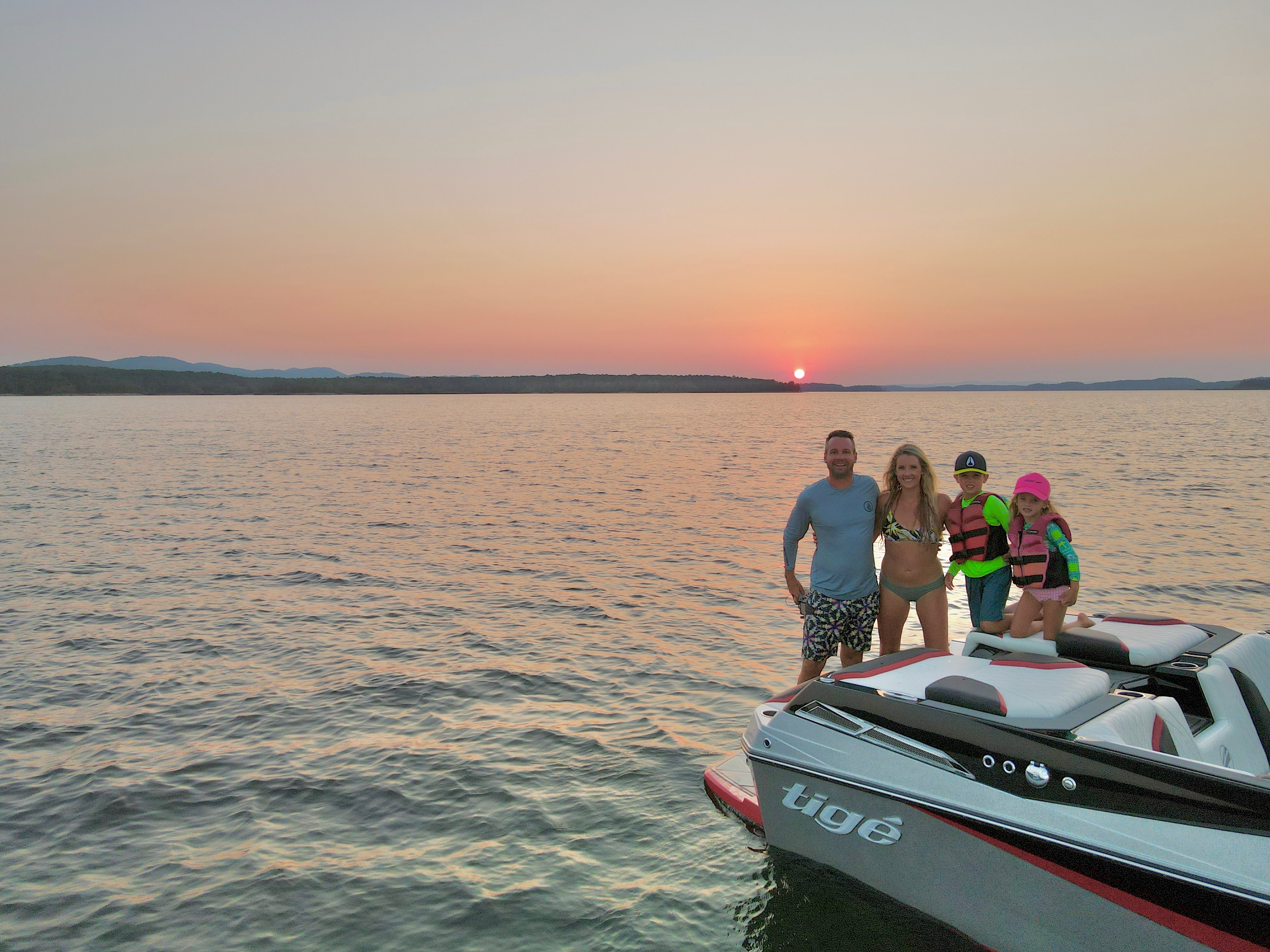 Having gone from a young couple to a family of four over their 11 years of Tigé ownership, Brandon has some practical wisdom for families considering getting into boating. "Definitely plan for the future regarding capacity and storage needs," he advises. "Kids, dependent on age, want to invite friends, and maybe complete families."