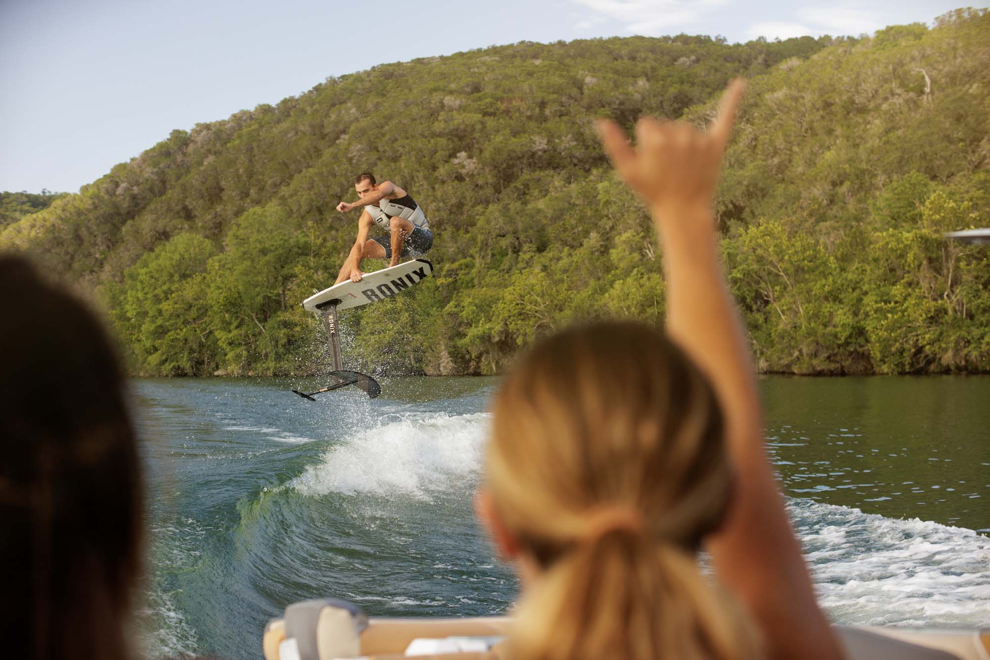 The Ultré ZX didn't earn Boat of the Year in the Watersports category by accident—it's engineered as the best surf boat and best all-around wake boat for wakeboarding, wakesurfing, foiling, and skiing. The GO System's sport-specific modes and the patented hull's adaptable water displacement ensure elite-level performance in each watersport, setting the standard for what a boat should deliver.