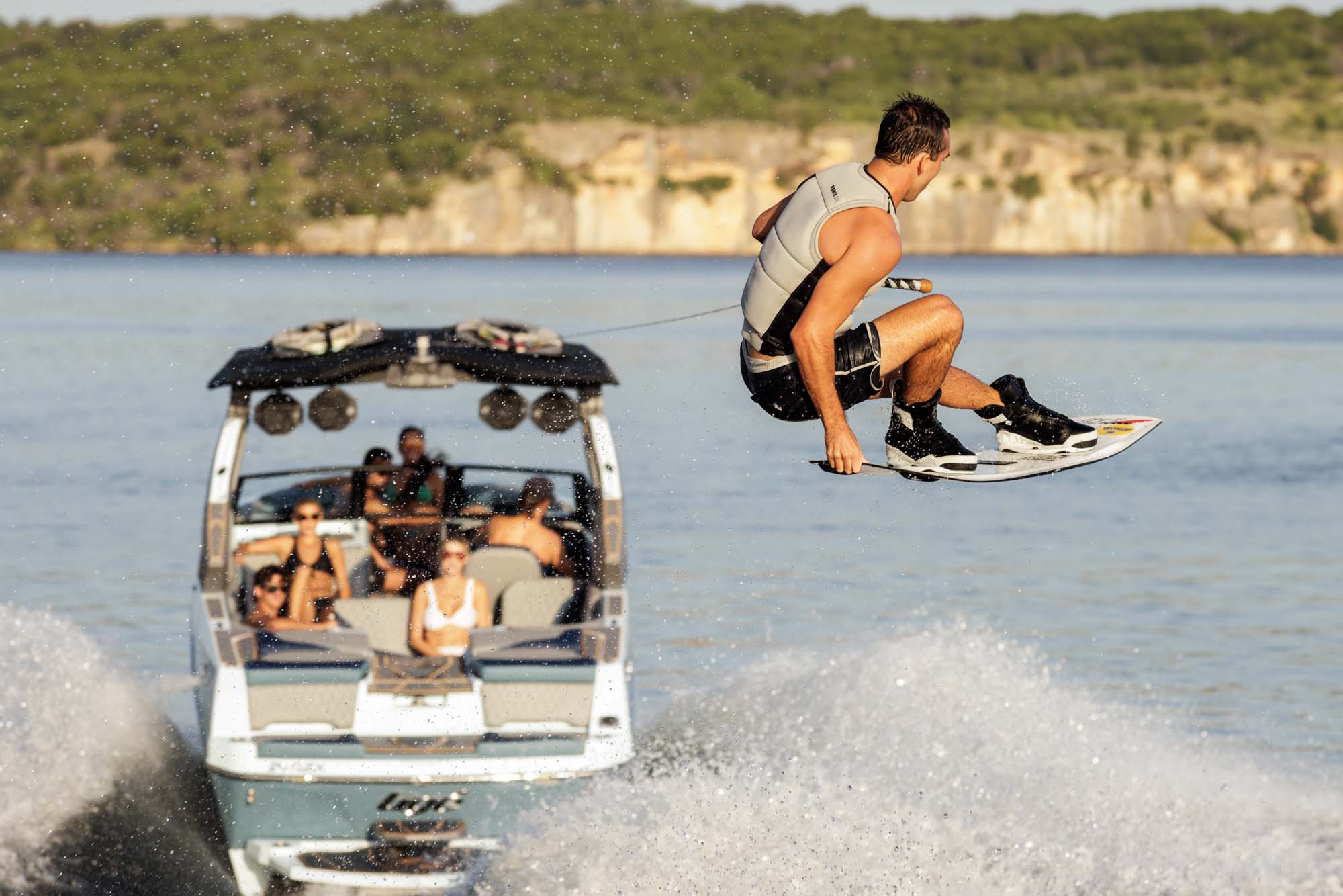 You'll need four things: a wakeboard, bindings, a tow rope, a life jacket, and something to tow you – preferably a Tigé Boat.